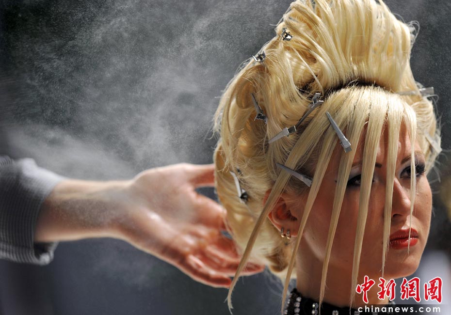 近日,第九屆“水晶天使”國際發型藝術節開幕,設計師紛紛秀出自己設計的新款發型。圖片來源:中國新聞網
