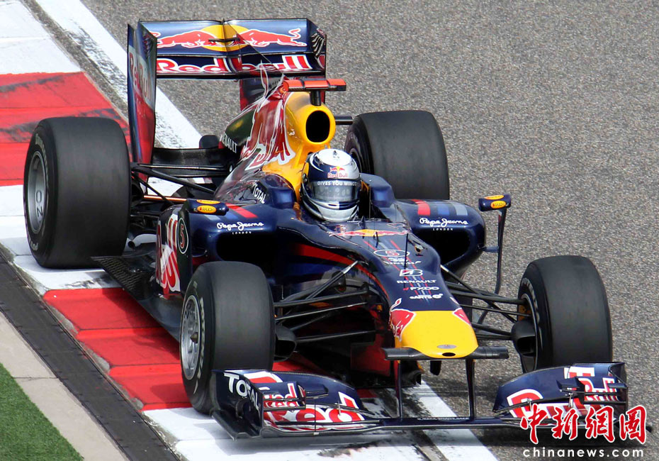 4月17日下午,2010國際汽聯F1世界錦標賽上海站在上海國際賽車場舉行排位賽,代表紅牛車隊出戰的德國車手維特爾(右)獲得桿位,隊友、澳大利亞車手韋伯獲得第二名,法拉利車隊的西班牙車手阿隆索獲得第三名。中新社記者 任晨鳴 攝