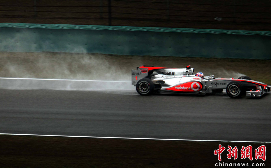 4月18日下午,2010國際汽聯(lián)F1世界錦標賽上海站在上海國際賽車場舉行正式比賽,邁凱輪車隊的英國車手巴頓在雨中獲得冠軍、隊友、英國車手漢密爾頓獲得亞軍,梅賽德斯GP車隊的德國車手羅斯伯格獲得季軍。圖為漢密爾頓。中新社記者 任晨鳴 攝