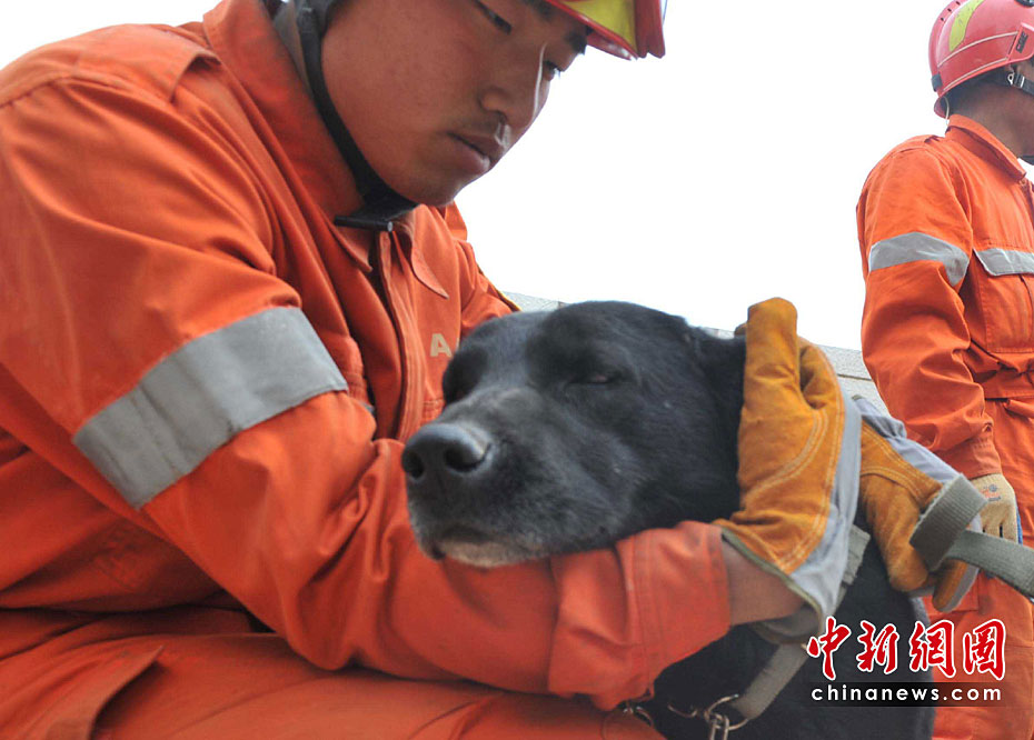 搜救犬黑貝玉樹地震廢墟上的一個清晨