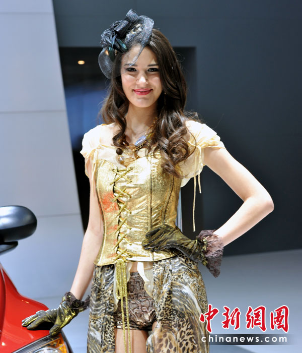 “第十一屆北京國際車展”是名車新品搶先亮相的舞臺(tái),也成了車模們爭(zhēng)奇斗艷的場(chǎng)所,參觀者在車展中可以享受兩道視覺大餐。中新網(wǎng)記者 金碩 攝