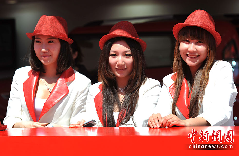 “第十一屆北京國際車展”場內車模爭奇斗艷,場外美女不甘示弱。中新網記者 金碩 攝