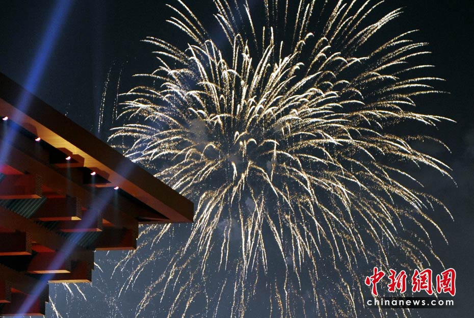 4月30日晚,2010年上海世博會開幕式在上海世博園世博文化中心舉行。21時28分,世博會焰火燈光表演開始。黃浦江兩岸綿延3.28公里同時奏響火樹銀花不夜天的華彩世博樂章。中新網記者 王紅綱 攝