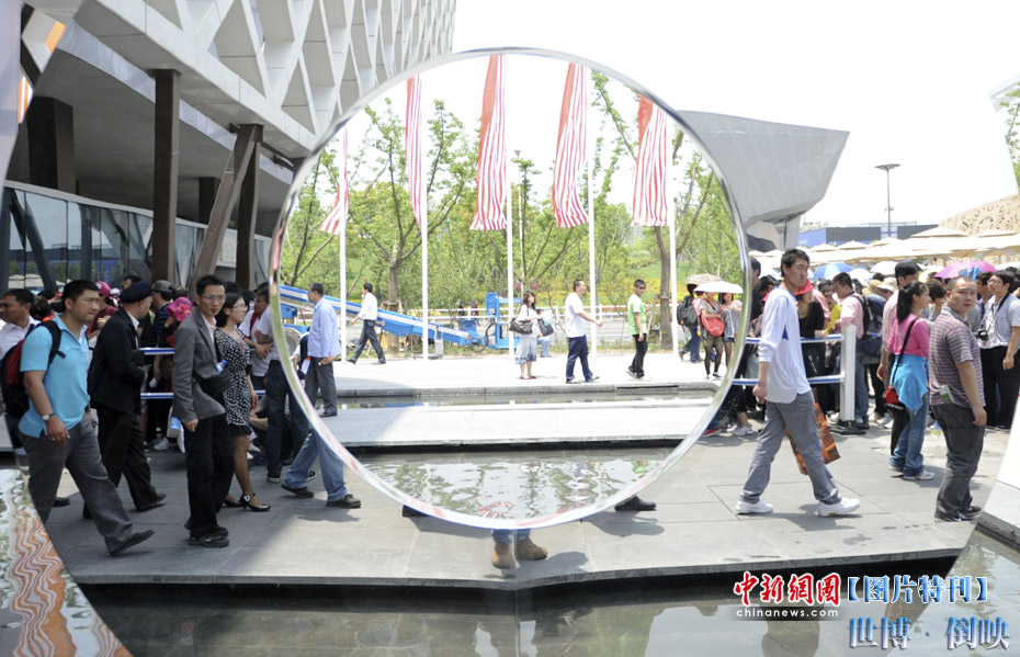 圖為法國館外的一個鏡面雕塑。中新社記者 廖攀 攝