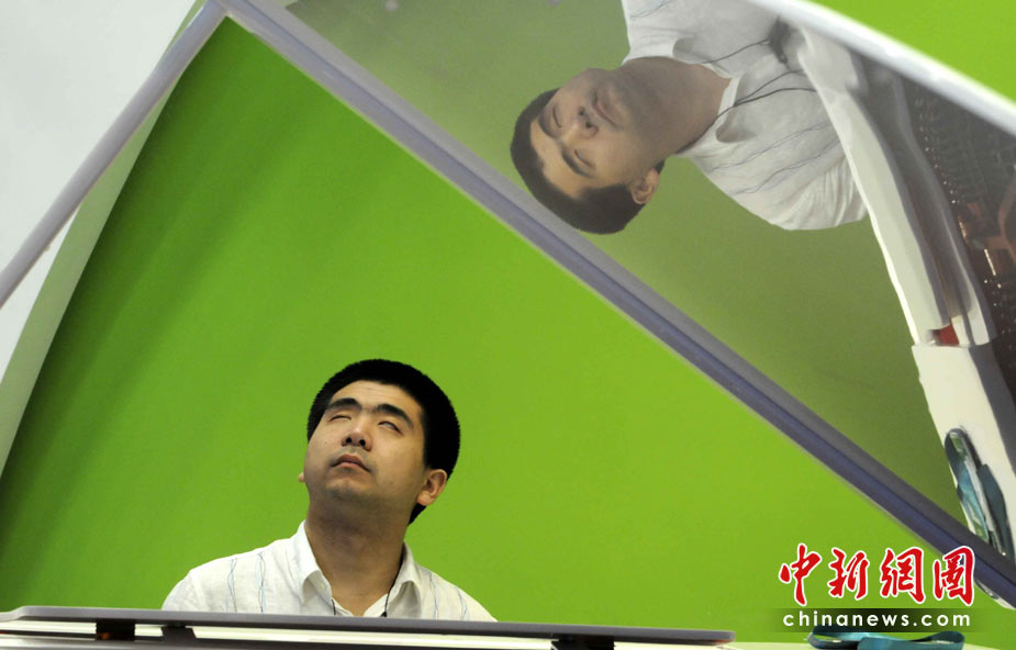 5月4日是上海世博會(huì)第四天,盲人鋼琴家孫巖在生命陽(yáng)光館專設(shè)區(qū)域?yàn)楸姸鄽埣踩撕陀^眾演奏,導(dǎo)盲犬靜臥在他的腳邊,這是世博會(huì)歷史上第一次為殘疾人設(shè)館。孫巖2005年獲得“日本橫濱第一屆國(guó)際殘疾人鋼琴比賽”金獎(jiǎng),他是中央音樂學(xué)院有史以來(lái)第一位盲人大學(xué)生和研究生。他的傾情演奏感動(dòng)全場(chǎng),掌聲連連。中新社發(fā) 賈國(guó)榮 攝