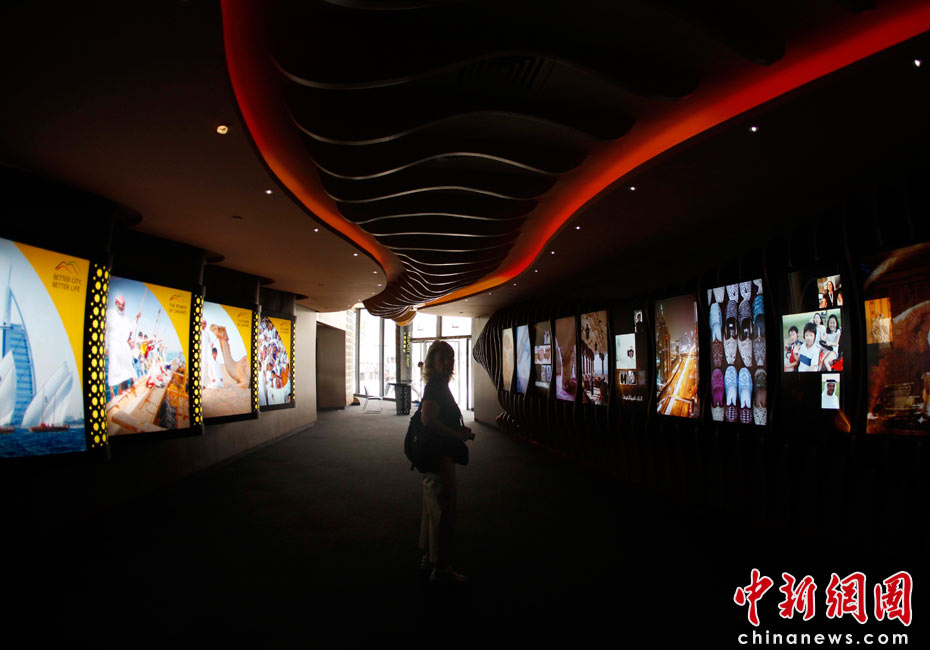 2010年5月4日,上海世博園區,一位游客在主題為“夢想的力量”的阿聯酋館內參觀,體驗夢想之旅。中新社發 盛佳鵬 攝