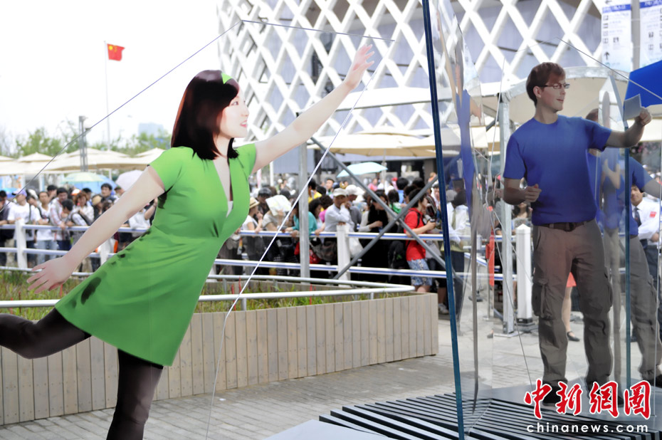 圖為德國館的兩個虛擬講解員——德國青年“嚴思”和中國女孩“燕燕”。中新網記者 王紅綱 攝