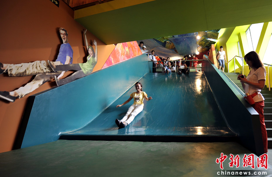 不愿走樓梯下樓的,還可以直接滑梯下來(lái),一些成年人也紛紛找到了童年時(shí)的歡樂(lè)。中新網(wǎng)記者 王紅綱 攝