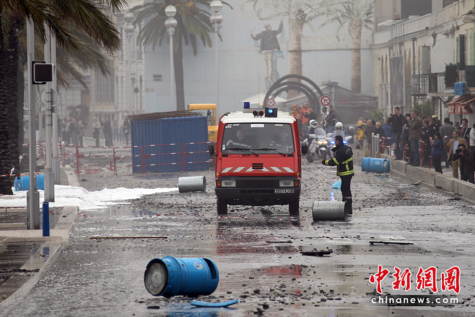 近日,在法國南部城市尼斯,巨浪襲擊城市的海岸后造成城市道路癱瘓。法國南部部分地區(qū)遭遇大風(fēng)和巨浪,使當(dāng)?shù)亟煌ê凸╇娛艿讲煌潭鹊挠绊憽D片來源:中國新聞網(wǎng)