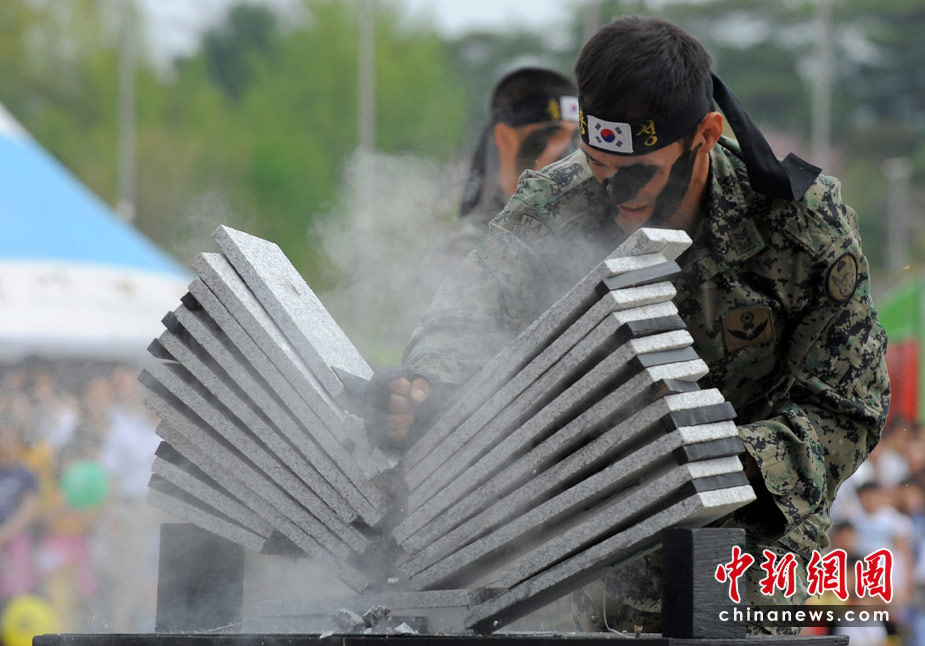 5月5日,韓國(guó)兒童節(jié),韓國(guó)突擊隊(duì)員在國(guó)家戰(zhàn)爭(zhēng)博物館為孩子們表演。