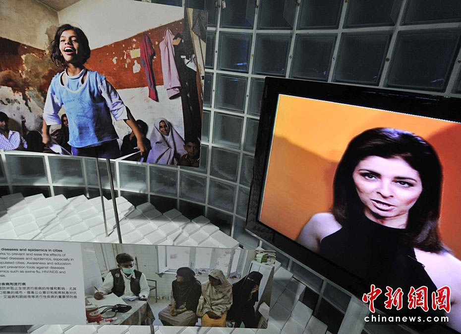 一所藍色的簡樸平房,在5月開園的上海世博會大道邊上,極不顯眼。但是,聯合國聯合館的鮮明會標,特別吸引人。這個展館集中了世界衛生組織、世界銀行和聯合國的兒童基金會、糧農組織、教科文組織等22個機構。圖片來源:中國新聞網 賈國榮 攝