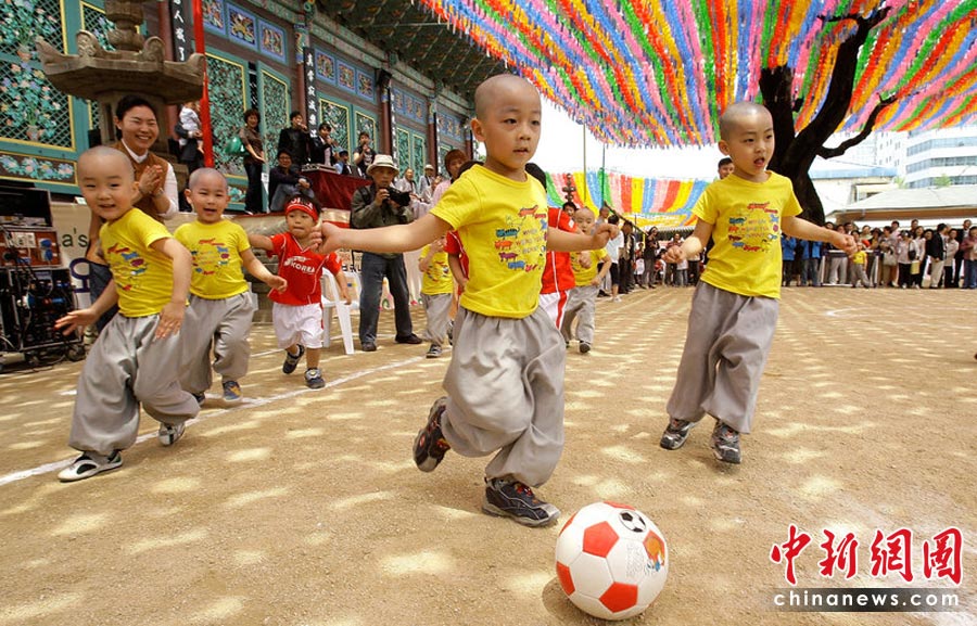 2010年5月15日,韓國首爾曹溪寺院舉行了兒童足球賽,一群四五歲的孩子和小和尚參加了這場足球友誼賽。這場比賽是佛誕節活動的一部分,也是為了迎接2010世界杯足球賽的到來。Chung Sung-Jun