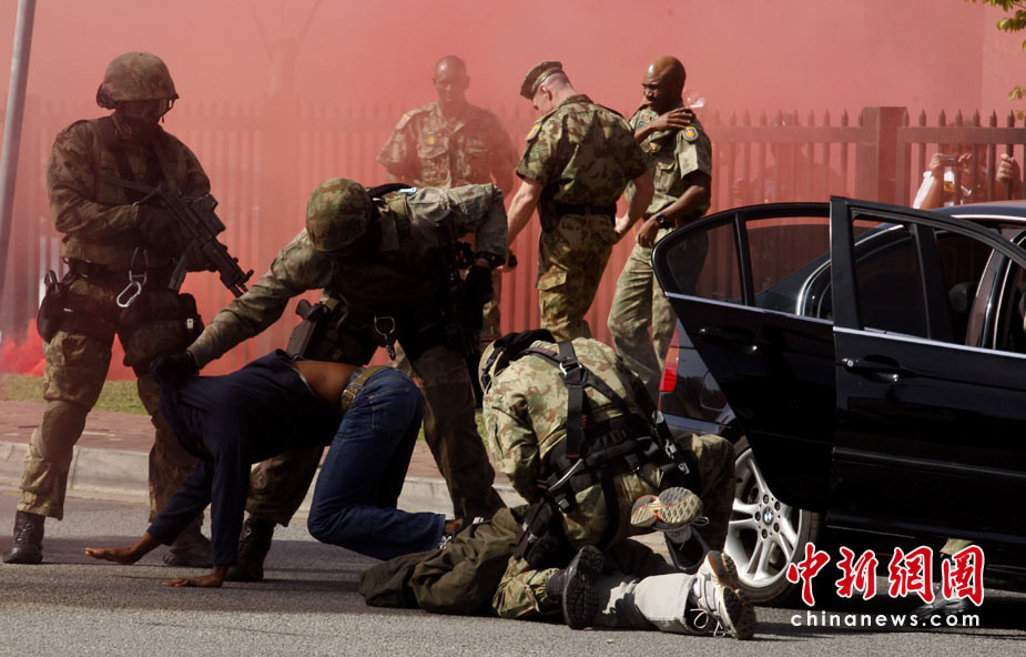 5月17日,南非約翰內斯堡,警察舉行防暴演習,為下個月舉行的世界杯做準備。 圖片來源:中國新聞網