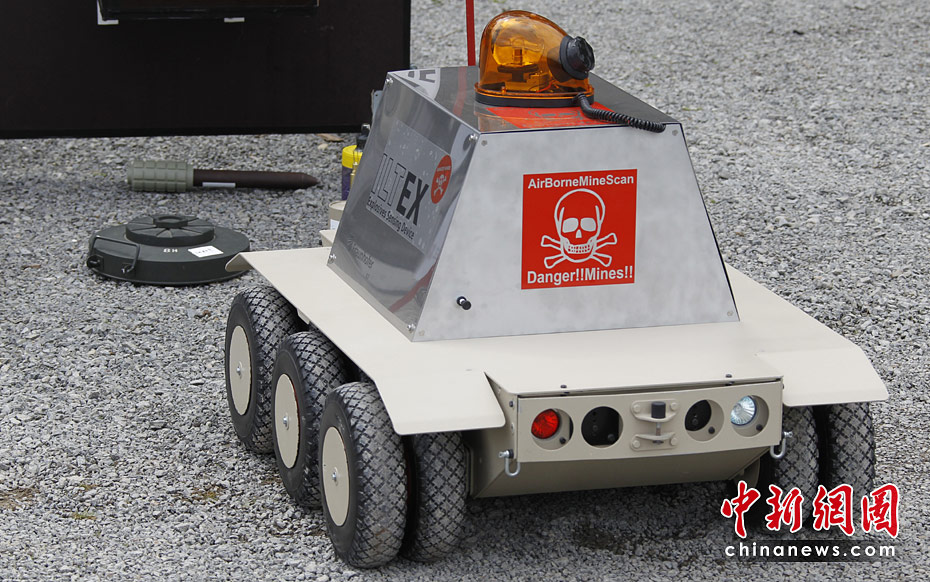 當地時間5月18日,德國南部哈默爾堡舉行了歐洲軍用機器人大賽。歐洲各國軍用機器人在大賽上一展身手。圖片來源:中國新聞網