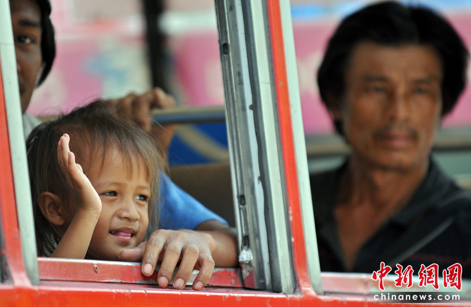 5月20日,數(shù)千名結(jié)束集會的外地“紅衫軍”示威者在曼谷拉差巴頌地區(qū)接受登記和安全檢查后,乘坐政府安排的車輛返回家鄉(xiāng)。