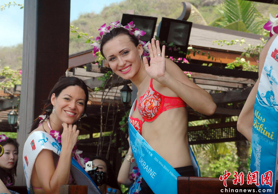 5月21日,海南三亞參加第35屆國際比基尼小姐全球總決賽的64位各國佳麗開始了她們在三亞為期9天的時尚美麗之旅。當日,佳麗們前往著名的天涯海角、大小洞天等景區,拍攝外景,體驗美麗的三亞熱帶風光,展現美麗風采。中新社記者 尹海明 攝