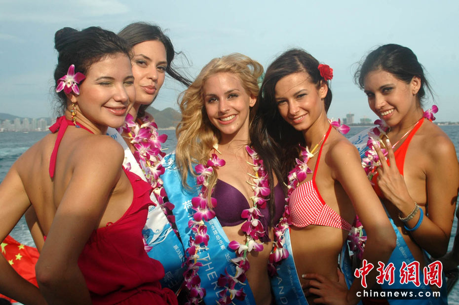 5月23日,全球64位比基尼佳麗們參加了三亞“清涼一夏 文化三亞”夏季旅游促銷活動的啟動儀式及系列主題活動,與三亞市民和游客親密接觸,跳起了歡快的竹竿舞,并乘豪華游艇暢游三亞。中新社記者 尹海明 攝