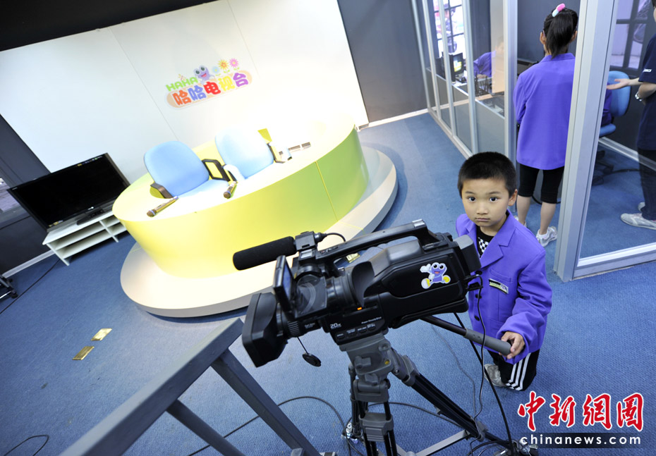 圖為孩子在體驗做一個攝影師。 中新網記者 王紅綱 攝