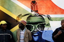當(dāng)?shù)貢r間6月9日,南非約翰內(nèi)斯堡足球城,一名球迷騎行特型自行車。中新社發(fā) 廖攀 攝