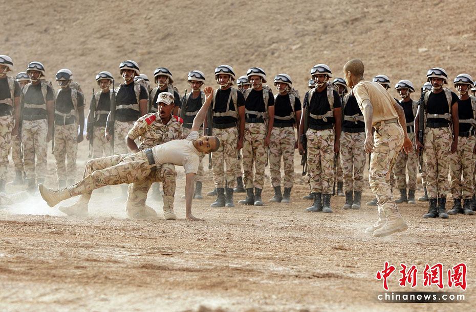 當地時間6月9日,在沙特阿拉伯的利雅得,沙特特種兵學員在畢業表演中展示所學技能。圖片來源:中國新聞網