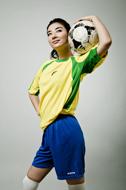 近日,黃奕身穿巴西隊球衣拍攝了一組世界杯足球寫真,為南非世界杯助威喝彩。