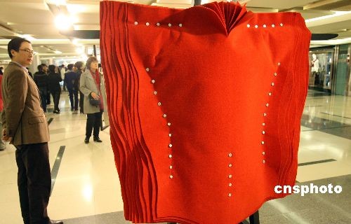 11月8日,“從哪里來——時裝藝術國際展/From Where-- Fashion Art 2008 International在北京國貿商城開幕,本次展覽共邀請10個國家和地區88位藝術家的88件作品,他們分別來自美國、法國、德國、英國、韓國、中國以及中國香港地區,受邀參加本次展覽的外國藝術家有Louda larrain、Johanna braitbart、金暎仁、琴基淑、李知賢等。中新社發 錢興強 攝