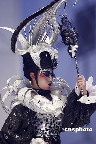 11月12日,“美麗盛典”2008中國國際時裝周彩妝造型設計大賽在北京舉行。大賽主題為“幻彩魔方”,結合國際色彩流行趨勢,強調繽紛顏色的互相碰撞組合,就像魔方上的色塊,有趣而且多變,讓造型設計變得更加藝術。中新社發(fā) 盛佳鵬 攝