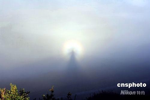 7月8日早晨,新疆喀納斯景區上空出現大片云霧,在陽光的直射下,出現了罕見的“佛光”奇觀?{斯景區位于新疆西北部,北與哈薩克斯坦、俄羅斯、蒙古交界。神秘的湖怪、令人費解的枯木長堤、暗藏水下的湖底森林、以及奇異壯觀的云!胺鸸狻笔切陆{斯景區最著名的“四大奇觀”。中新社發 康劍 攝