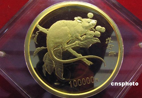 10月26日,由中國金幣總公司等單位主辦的“2007北京國際錢幣博覽會”在北京中國國際貿(mào)易中心開幕。博覽會展出了中國人民銀行于2007年10月23日發(fā)行的2008中國戊子(鼠)年金銀紀(jì)念幣一套。其中10公斤(鼠)圓形金質(zhì)紀(jì)念幣,含純金10公斤,直徑180毫米,面額100000元,成色99.9%,最大發(fā)行量僅僅18枚。據(jù)介紹,這枚10公斤金幣售價遠(yuǎn)遠(yuǎn)高于面值。中新社發(fā) 鄒憲 攝