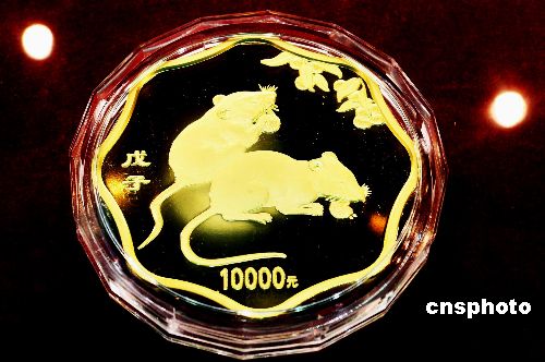 11月9日,一重達1千克的2008中國戊子(鼠)年生肖紀念金幣首次出現在第三屆北京金融博覽會。據悉,這套鼠年生肖紀念金幣將于今年年底正式發售,其中最重的單枚戊子(鼠)年紀念金幣重達10公斤。本次金博會主題為“投資、融資、理財”,匯集銀行、基金、證券、保險等一百多家金融機構,推出一千多個金融產品參展。中新社發 鄭雄增 攝