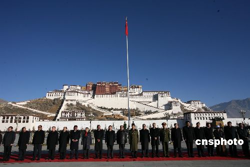 二00八年一月一日,西藏自治區(qū)在拉薩布達拉宮廣場舉行升國旗、唱國歌活動,來自各界的三千多人參加了升旗儀式。中新社發(fā) 賈長飛 攝