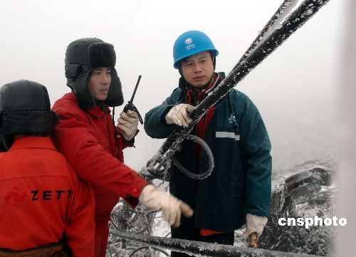 1月28日,浙江省送變電工程公司派出人員搶修紹興西南地區(qū)的一條超高壓受損線路。近日浙江省雪災(zāi)、冰災(zāi)情況進一步惡化,電網(wǎng)運行面臨巨大挑戰(zhàn)。中新社發(fā) 蘇立建 攝