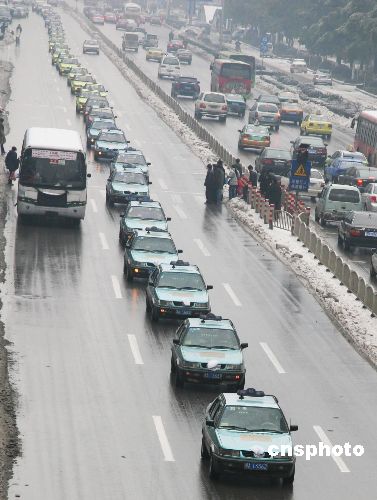 1月30日,長沙市民為三位在保電搶險中獻出生命的英雄送行。送行的車隊由上百臺的士組成,并陸續有更多的車輛加入到送行隊伍中。1月26日下午,湖南送變電建設公司的周景華、羅長明、羅海文在長沙縣沙坪變電站除冰搶險中不幸殉職,為確保國家電網安全獻出了寶貴生命,湖南省政府追認三位職工為烈士。中新社發 劉雙雙 攝