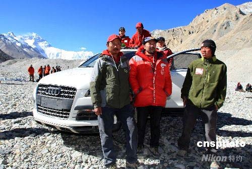 圖:圣火珠峰傳遞五大火炬手珠峰前留影