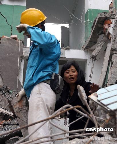 5月13日中午,四川省綿竹市漢旺鎮東方汽輪機廠子弟學校——東汽中學的垮塌校舍里,一名被埋學生的家長緊張地呼救,盼望自己的孩子能盡快脫困。12日,四川汶川縣發生7.8級地震,而漢旺鎮與汶川僅一山之隔,距離30余公里,受到嚴重破壞。中新社發 郭晉嘉 攝