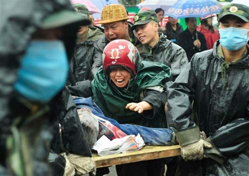圖:失去了親人的都江堰災(zāi)區(qū)災(zāi)民嚎啕大哭