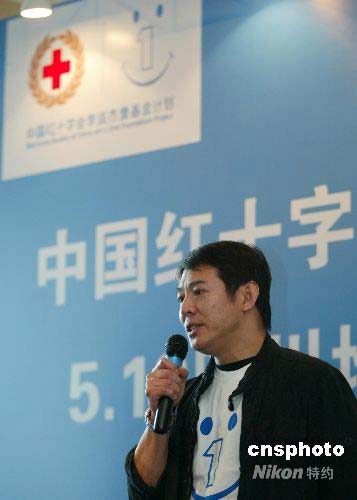 5月15日,中國紅十字會李連杰壹基金舉行“5.12四川地震救助情況通報會”,李連杰本人親自出席。該基金在地震發生后三天的時間里籌集善款人民幣2405萬元。5月17日,李連杰將與第一批救災物資一同飛往成都,將物資送到當地紅十字會,下發給災區。中新社發 富田 攝