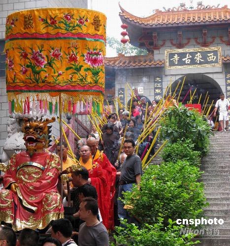 5月22日,廣西柳州西來寺舉行放生集會,為四川地震災區祈福,祝愿災區早日恢復重建。當天,市民共向柳江河放生魚苗一百萬尾。中新社發 蒙鳴明 攝