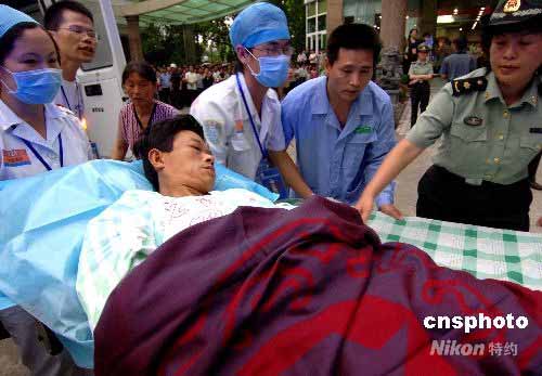 5月25日傍晚,24名四川地震災(zāi)區(qū)重傷員從成都乘坐航班抵達(dá)福州后隨即由救護(hù)車隊(duì)護(hù)送至南京軍區(qū)福州總醫(yī)院僑賓樓接受救治。圖為傷員抵達(dá)南京軍區(qū)福州總醫(yī)院后該院醫(yī)護(hù)人員全力救治每一位來(lái)自四川地震災(zāi)區(qū)的傷員。中新社發(fā) 劉可耕 攝