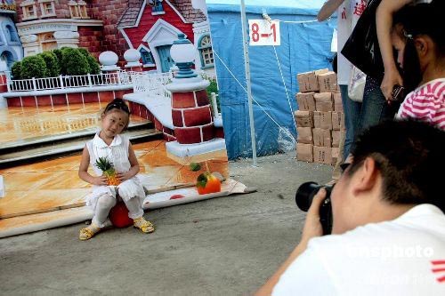 5月29日,四川一些影樓經(jīng)營者在都江堰安置點(diǎn)為兒童拍攝紀(jì)念照,美麗的布景和她們居住的救災(zāi)帳篷都被攝入鏡頭。5.12大地震過后第一個兒童節(jié)前夕,四川一些影樓經(jīng)營者,自發(fā)組成志愿者來到災(zāi)民安置點(diǎn),免費(fèi)為兒童拍攝紀(jì)念照,以特有方式為孩子們奉獻(xiàn)愛心、慶祝節(jié)日。中新社發(fā) 譚超 攝