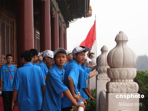 6月19日,距離奧運(yùn)會開幕50天之際,在北京就讀的來自四川綿竹災(zāi)區(qū)的學(xué)生登上天安門城樓參觀。 中新社發(fā) 洪濤 攝