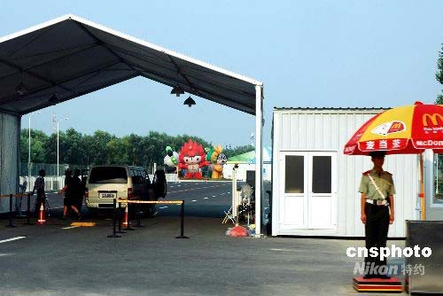 7月22日,北京奧運村采取嚴密的安全封閉措施,防止閑雜人員進入,謝絕游客參觀,保證將要到來的奧運會順利進行。中新社發 張雙雙 攝