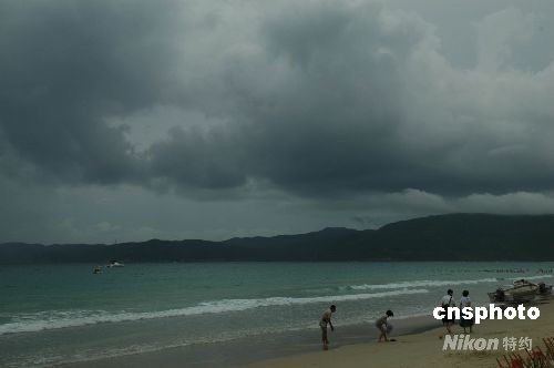 圖:受風暴“北冕”影響三亞海灘游人減少