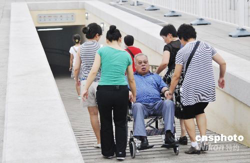 8月29日,為更好的服務殘奧會和相關殘障人士參觀天安門廣場,北京天安門廣場北側的殘障人士專用道已裝飾一新,面向社會各界有需要的公眾使用。中新社發 王宇婷 攝
