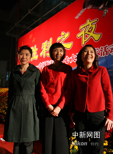 中國“神舟”七號載人航天飛行二十八日獲得圓滿成功,圖為喜笑顏開的三位航天員妻子,從左至右分別是景海鵬的妻子張萍,翟志剛的妻子張淑靜以及劉伯明的妻子張瑤。中新社記者 齊彬 攝