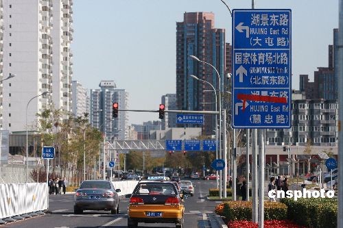 11月3日,北京奧林匹克公園東西向的4條主要道路已全部向社會車輛開放,無需通行證,但出于保護(hù)游客安全考慮,南北向主要道路目前仍封閉。中新社發(fā) 鄭雄增 攝
