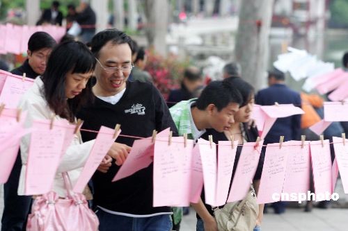 11月10日,還有1天就是光棍節了,福州西湖公園湖濱晨曦廣場舉辦的免費征婚活動吸引眾多單身男女和單身男女的父母匯聚在此尋覓或幫助尋覓意中人。中新社發 楊婀娜