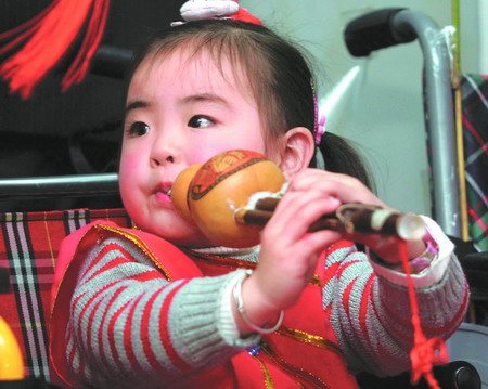 “春晚的導(dǎo)演叔叔和阿姨們,我們渴望上春晚!”昨日下午3時許,一支由12名地震致殘的孩子組成的“輪椅樂團”,在川大華西醫(yī)院地震康復(fù)中心舉辦了一場葫蘆絲演奏會。表演結(jié)束后,孩子們喊出了“渴望上春晚”的心聲。據(jù)悉,“輪椅樂團”的平均年齡僅10歲,其中最小的是3歲的宋馨懿。