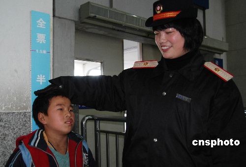 2008年12月25日,蘇州火車站更換了一批兒童票身高標(biāo)識(shí)牌。據(jù)了解,從12月21日起鐵道部決將乘坐火車時(shí)購(gòu)買兒童半價(jià)票的參照身高標(biāo)準(zhǔn)調(diào)整為1.1米至1.5米。相比原來(lái)1.1米至1.4米的標(biāo)準(zhǔn),新標(biāo)高的上限高出了10厘米。中新社發(fā) 朱子寒 攝