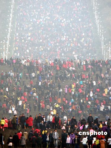 1月26日,重慶市云陽新縣城3萬多市民結伴登臨磐石城,訪古跡、看新城、賞平湖,以戶外健身活動的方式迎接新年。春節(jié)期間,三峽庫區(qū)的移民大縣云陽天氣晴朗,市民們紛紛走出戶外,廣場、公園、張飛廟、磐石城等風景區(qū)處處洋溢節(jié)日氣氛,大量游客和市民群眾在休閑中以各種不同方式歡快過節(jié)。中新社發(fā) 饒國君 攝